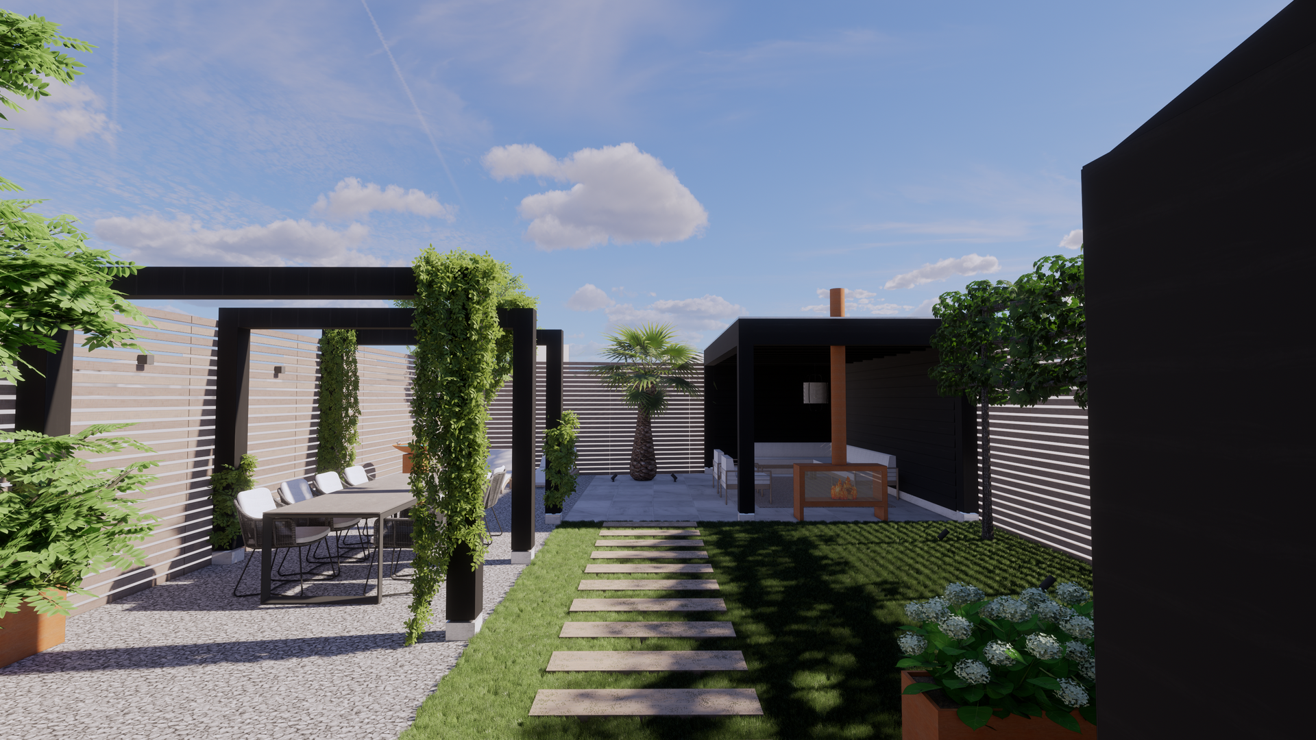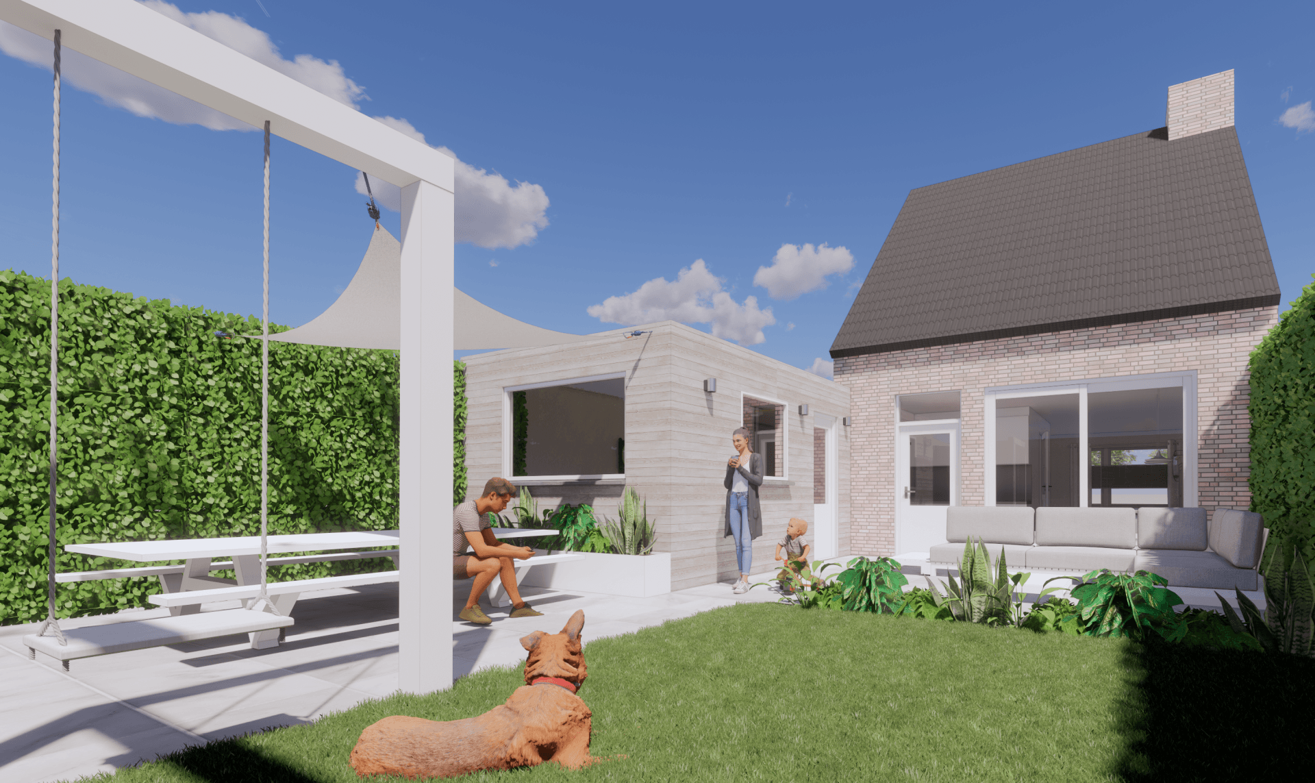 De visualisatie en het ontwerp van deze middel/grote tuin heeft Studio Knott uitgewerkt. Rekening houdend met het lichtinval en de hergebruikte delen.