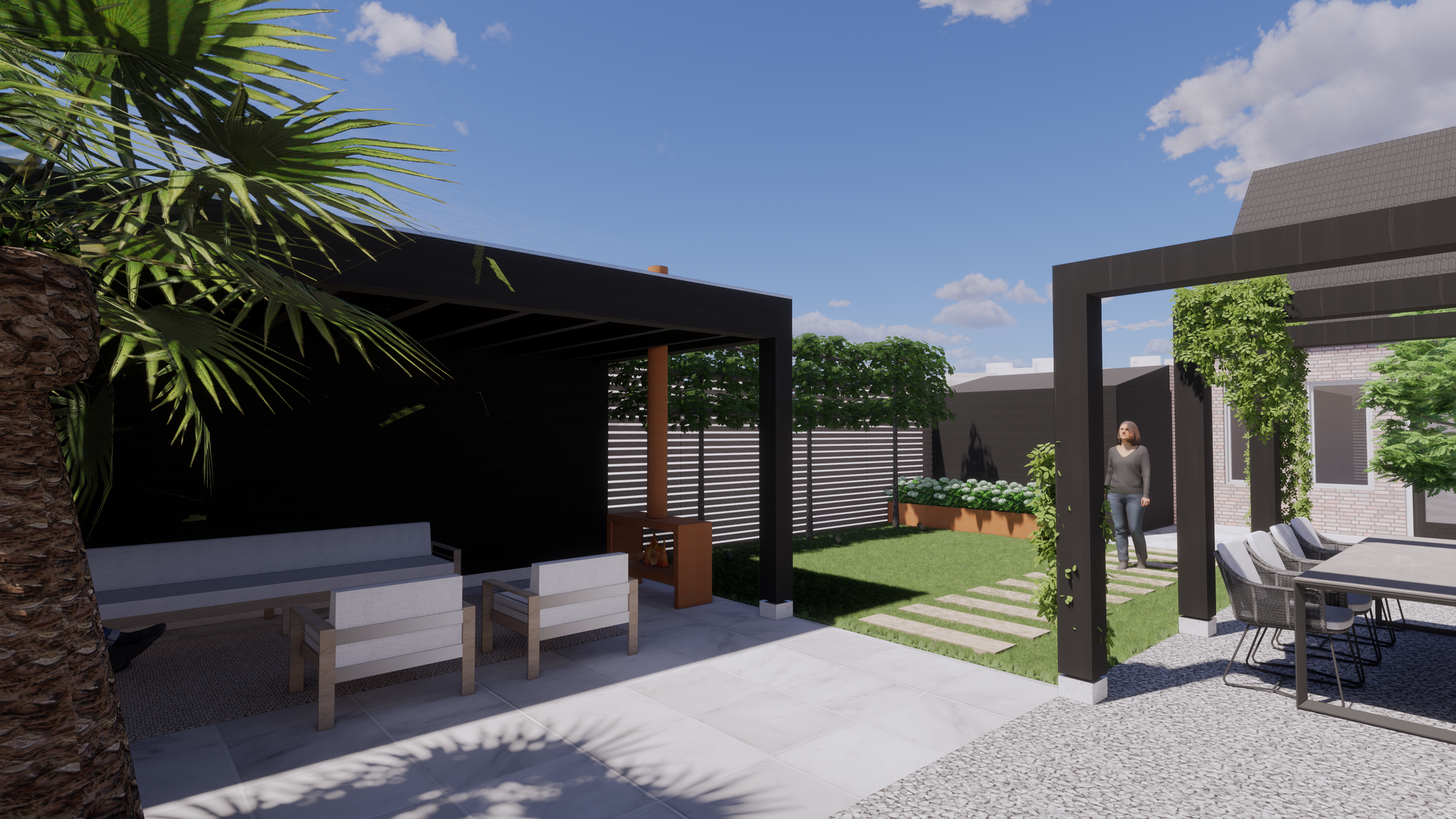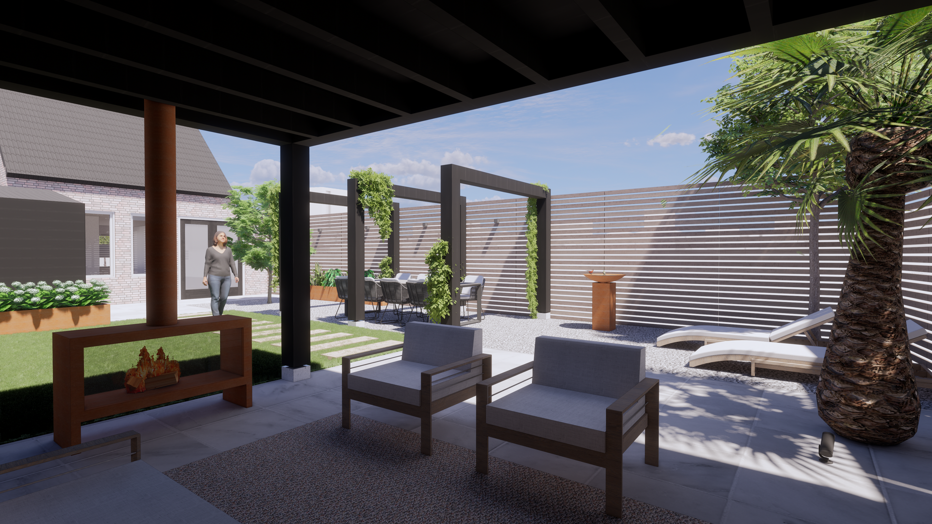De visualisatie en het ontwerp van deze middel/grote tuin heeft Studio Knott uitgewerkt. Rekening houdend met het lichtinval en de hergebruikte onderdelen.