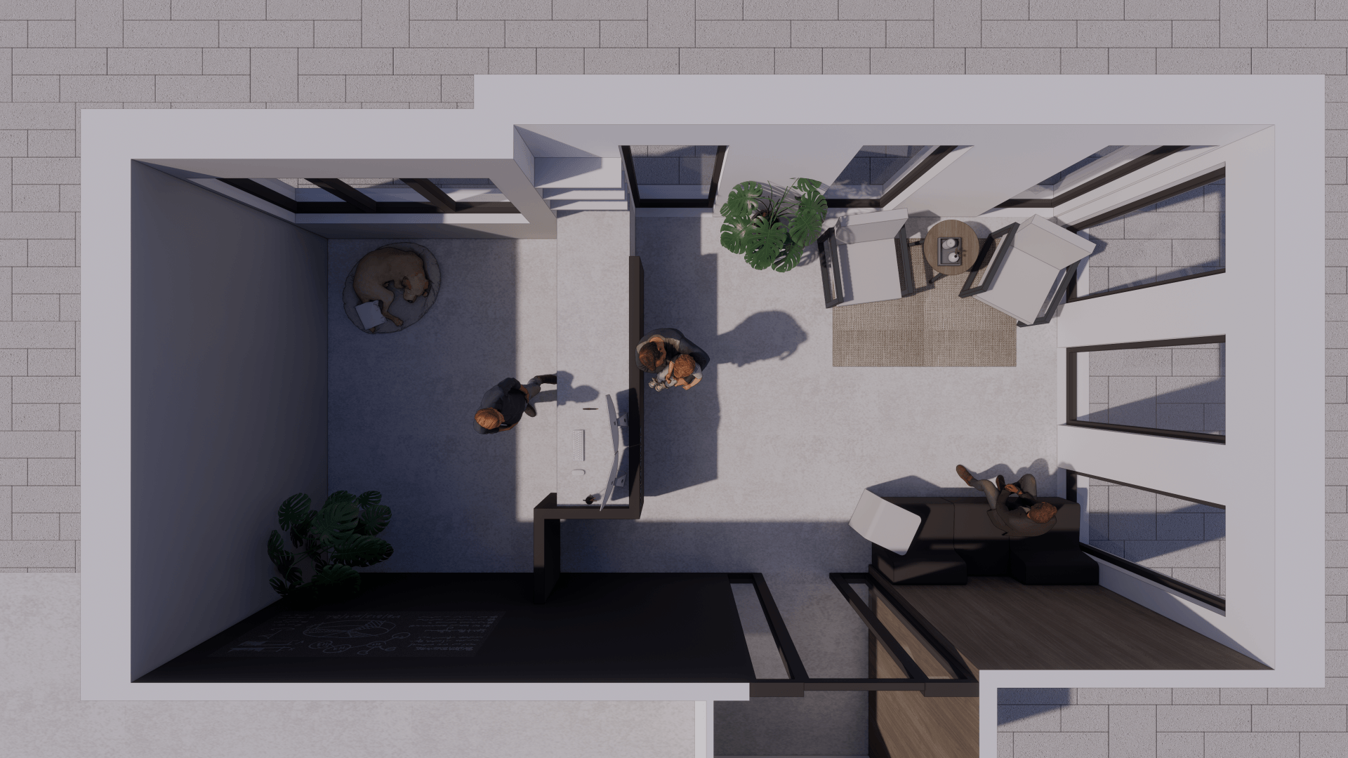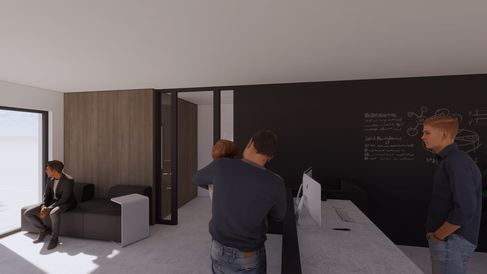 Een strakke tijdloze balie in combinatie met een warme houten wand en een fijne zit, voor bezoekers, hebben gezorgd voor een tof ontwerp. Uitgaand van de wensen van de opdrachtgevers hebben we het ontwerp toegespitst.
