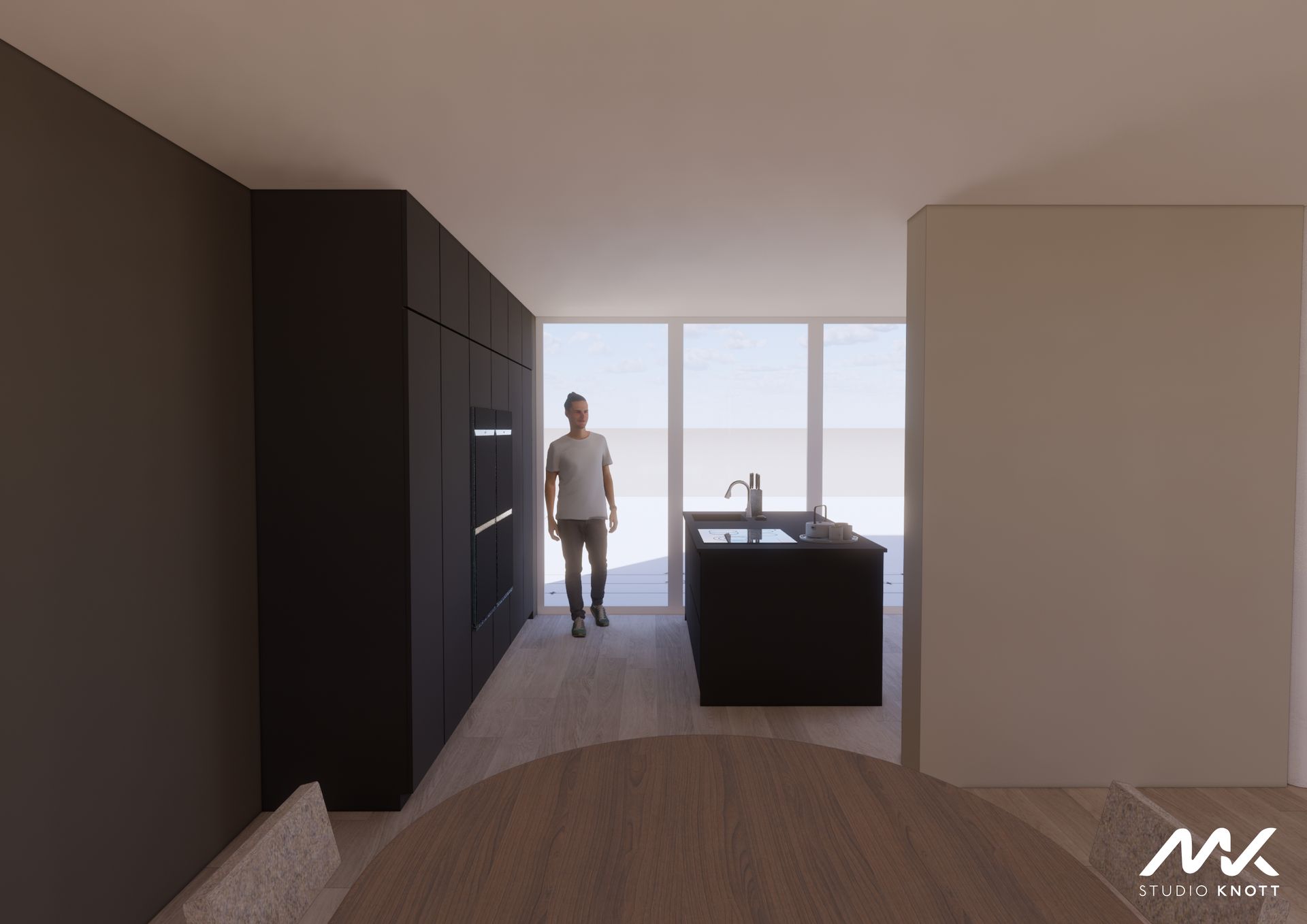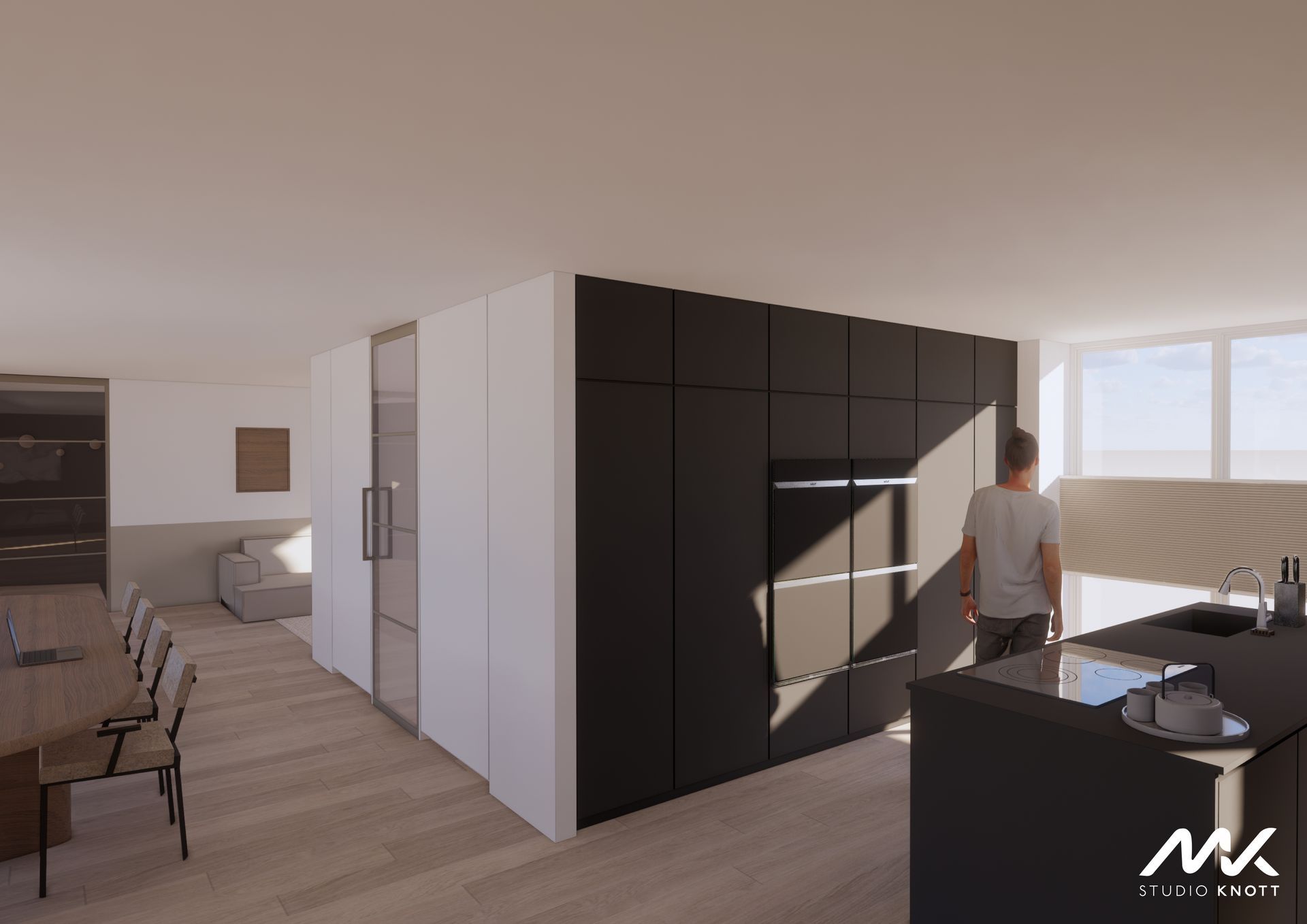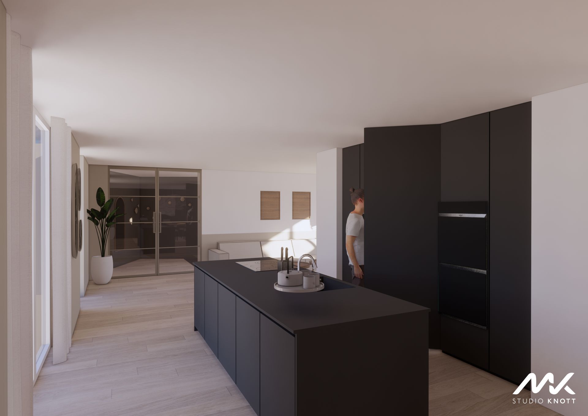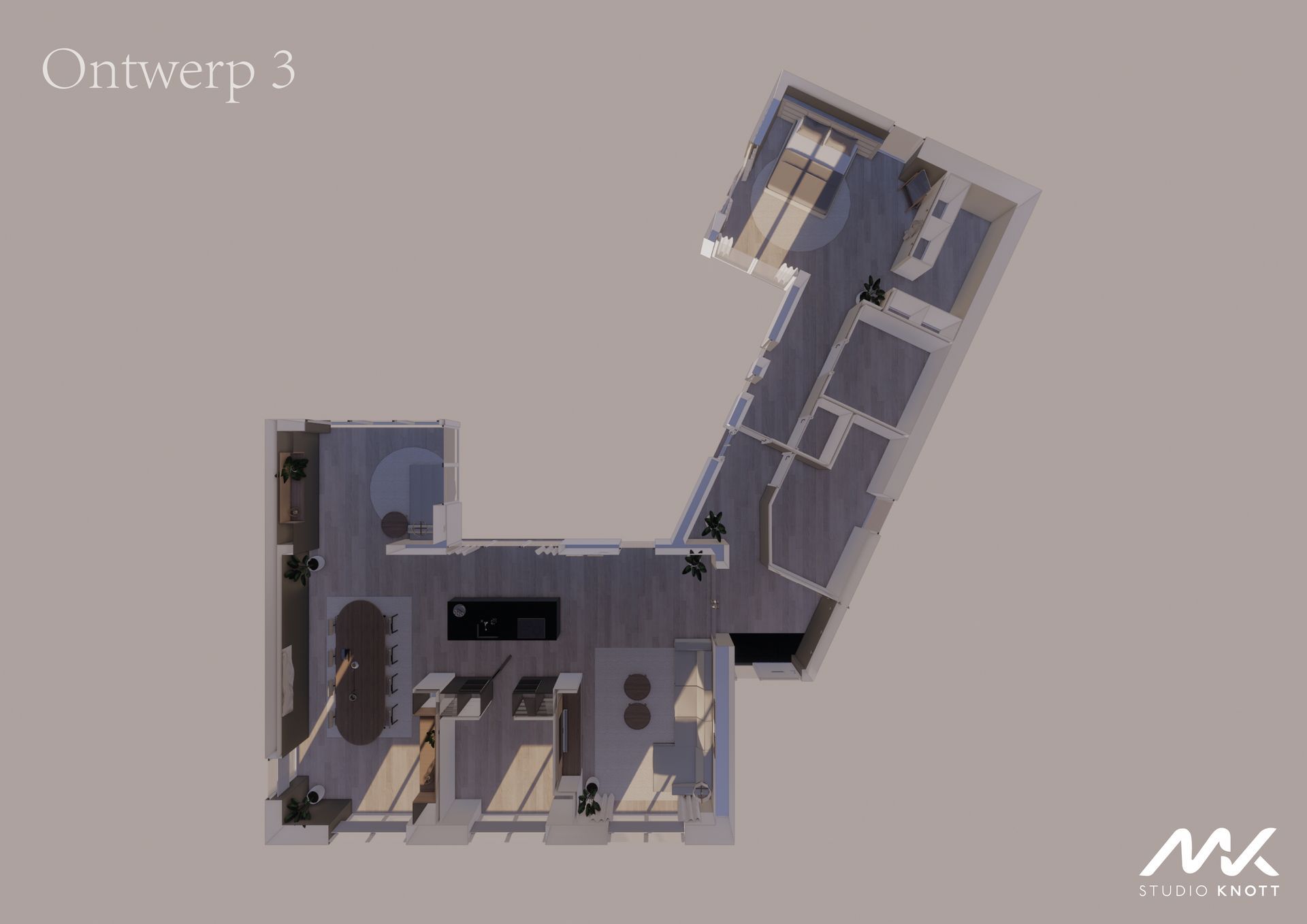 Voor de woning in Bavel heeft Studio Knott een drietal ontwerpen gemaakt. Doordat de opdrachtgevers de keuken op verschillende posities in de woning gevisualiseerd wilden hebben.