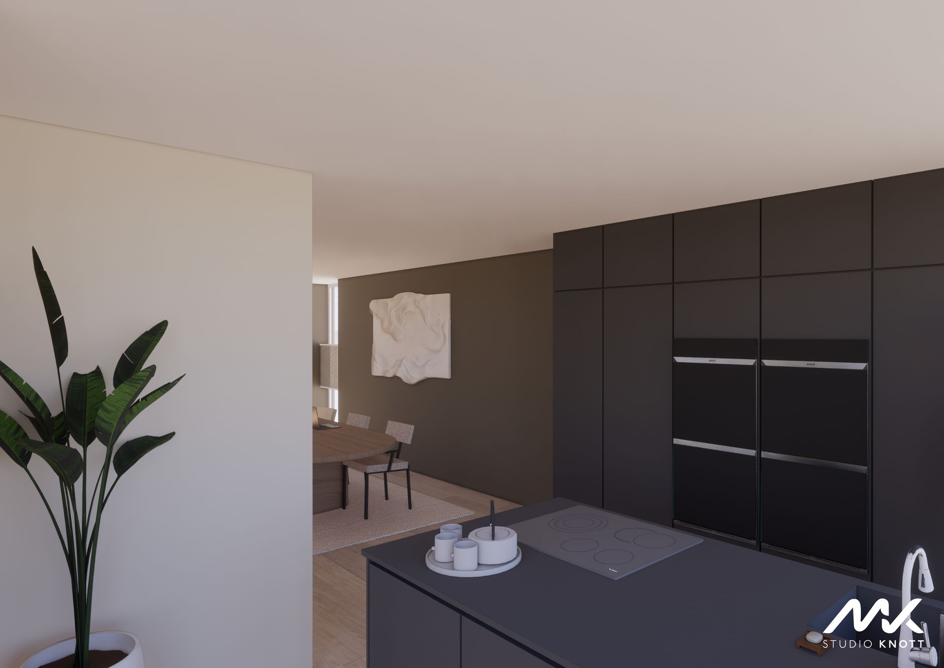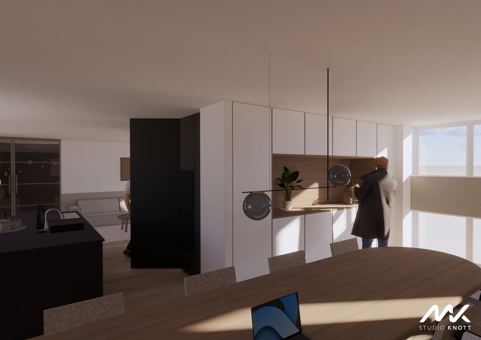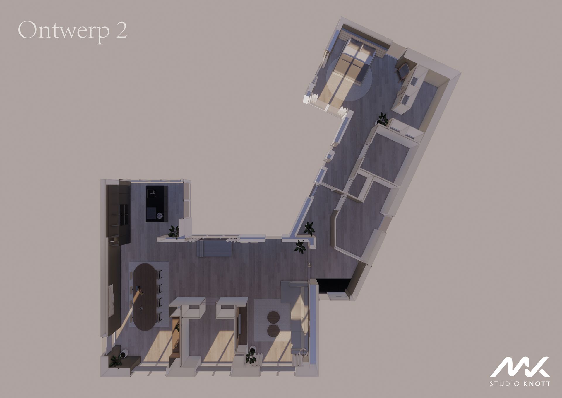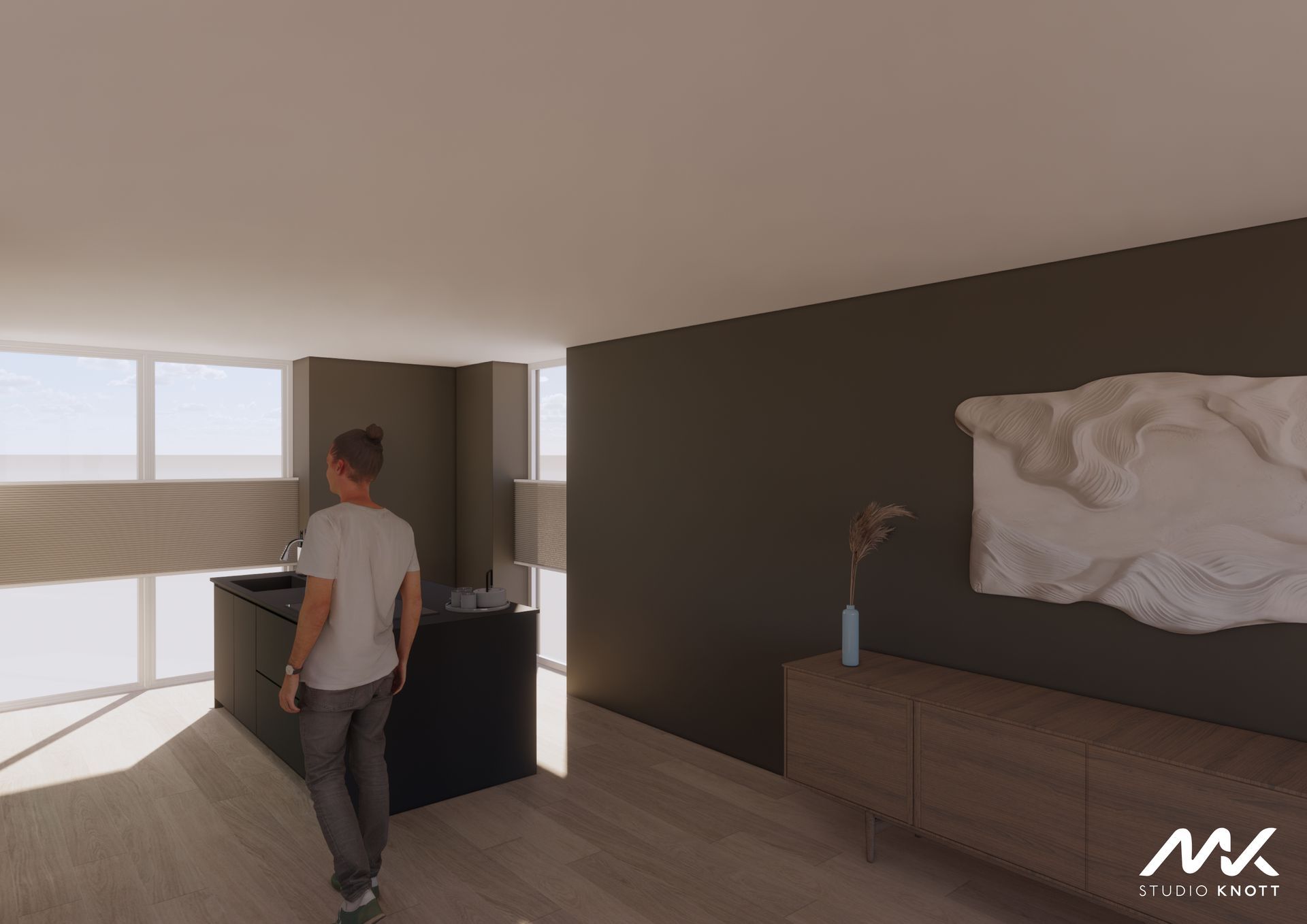 Voor de woning in Bavel heeft Studio Knott een drietal ontwerpen gemaakt. Doordat de opdrachtgevers de keuken op verschillende posities in de woning gevisualiseerd wilden hebben.