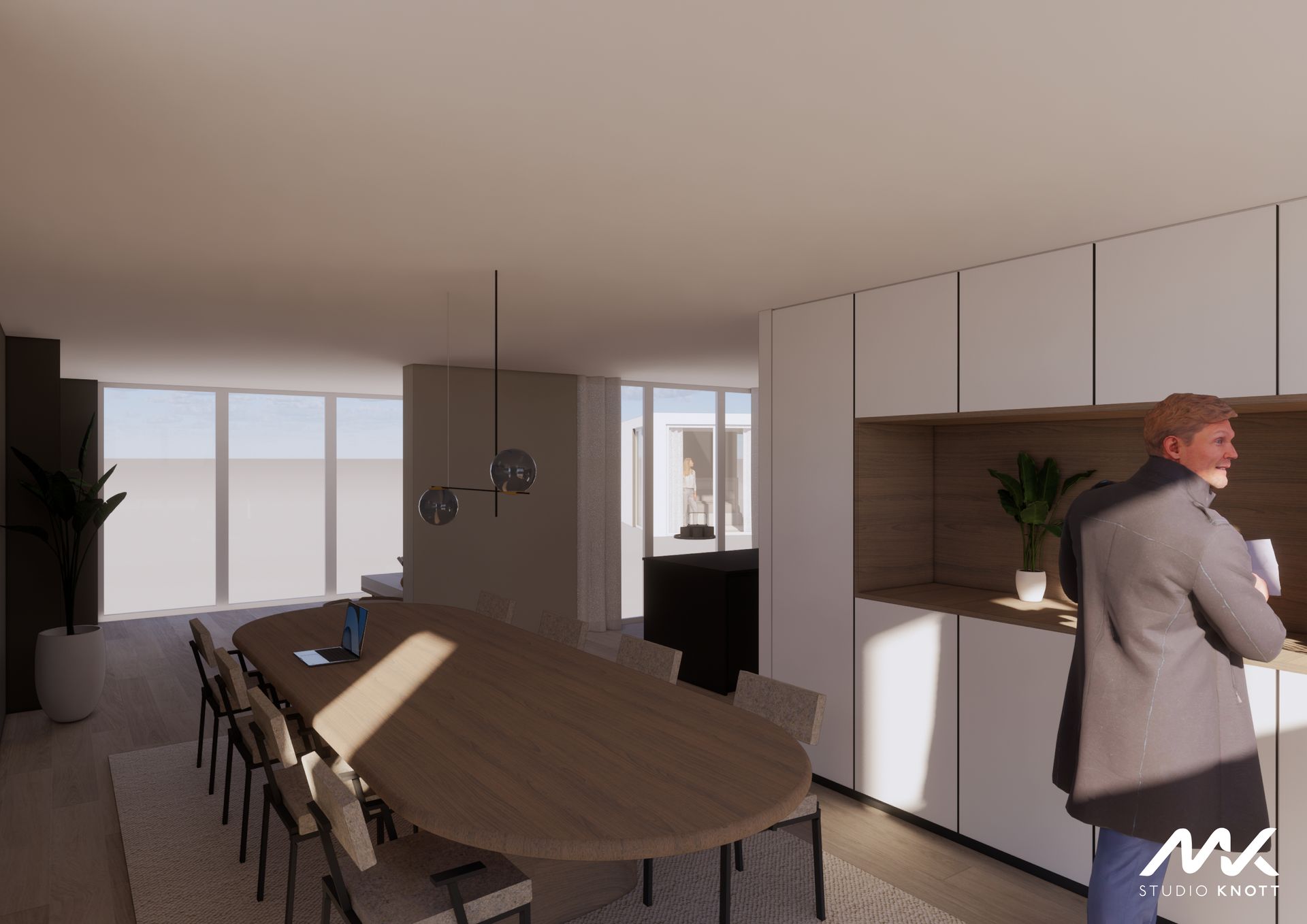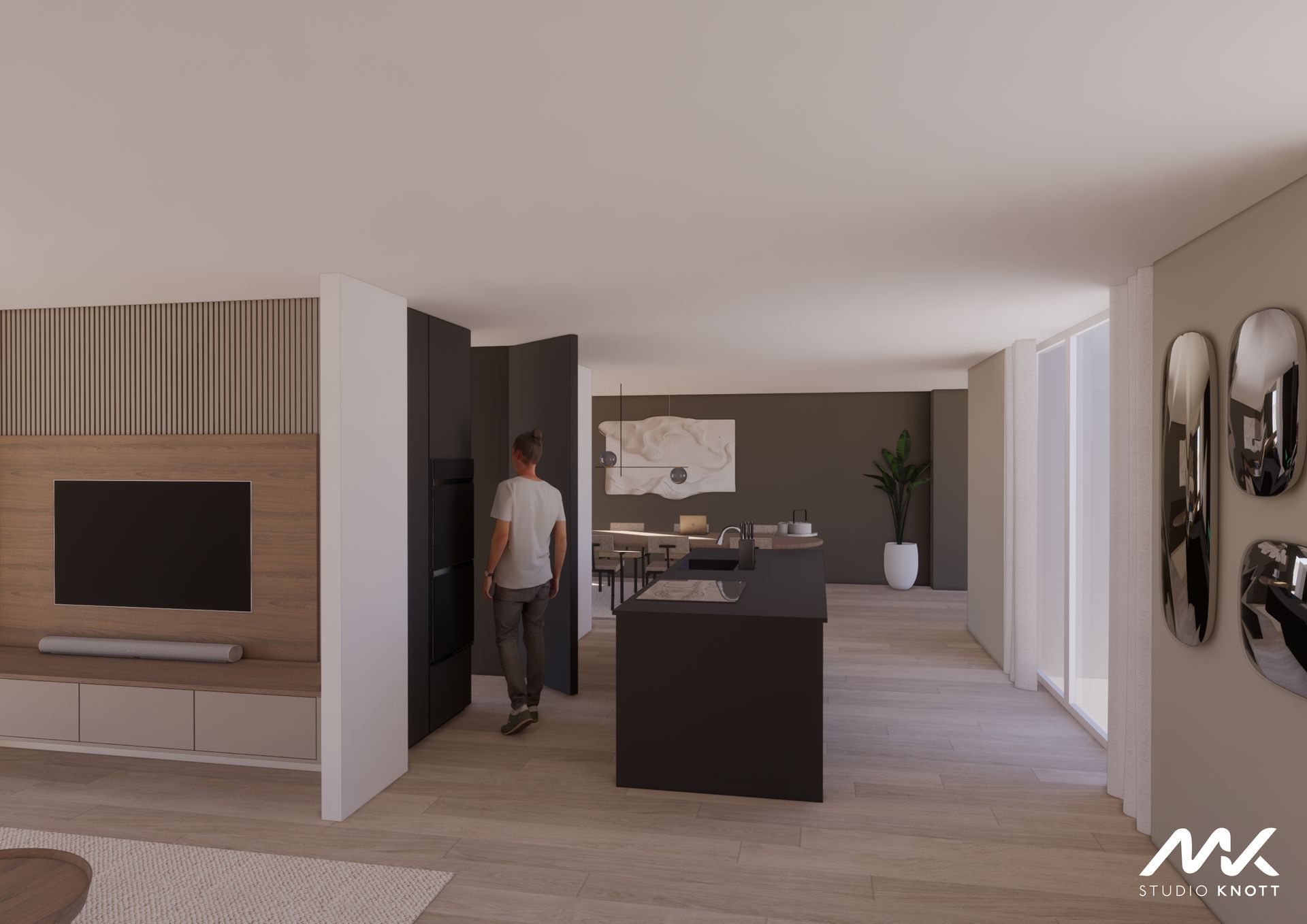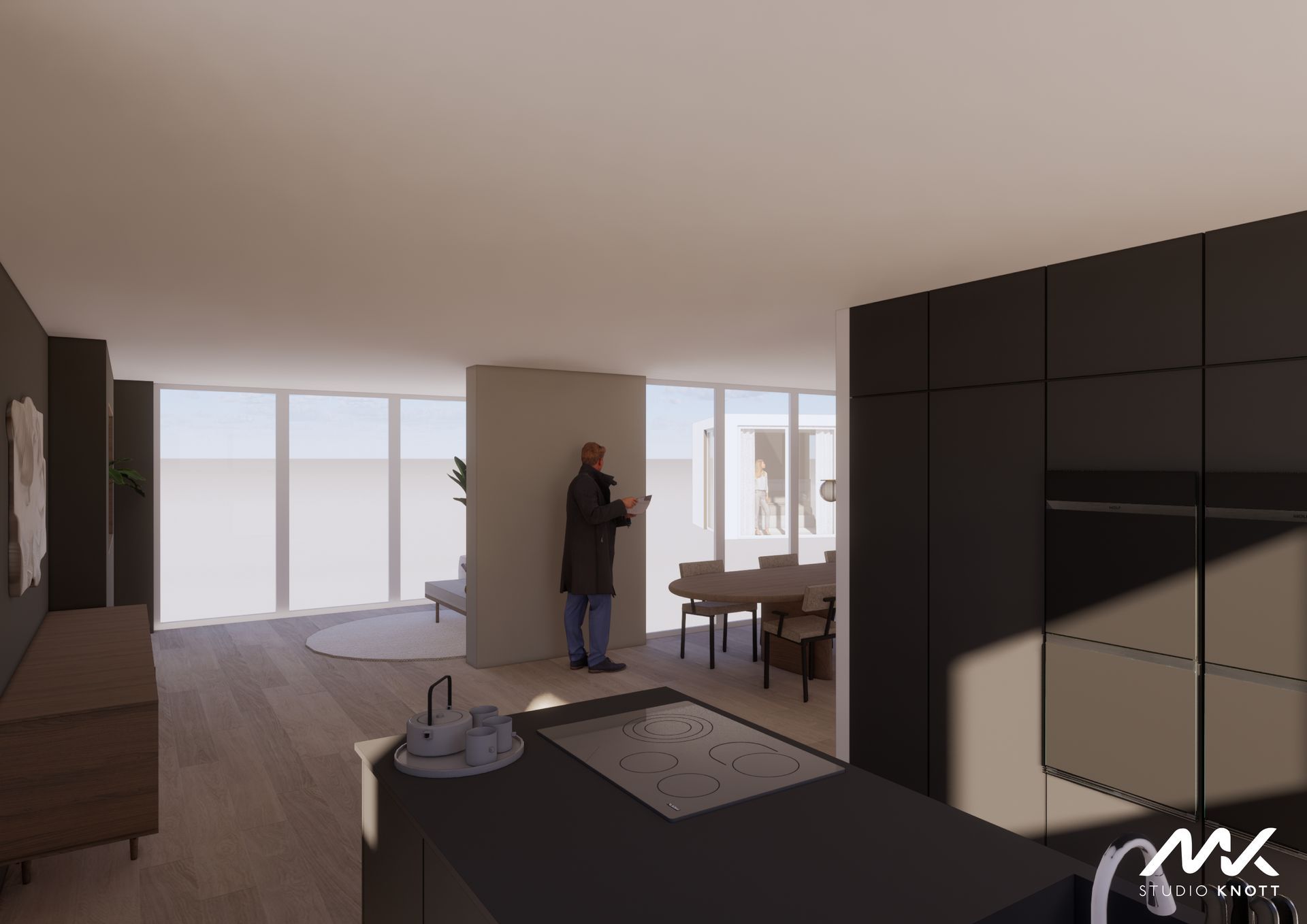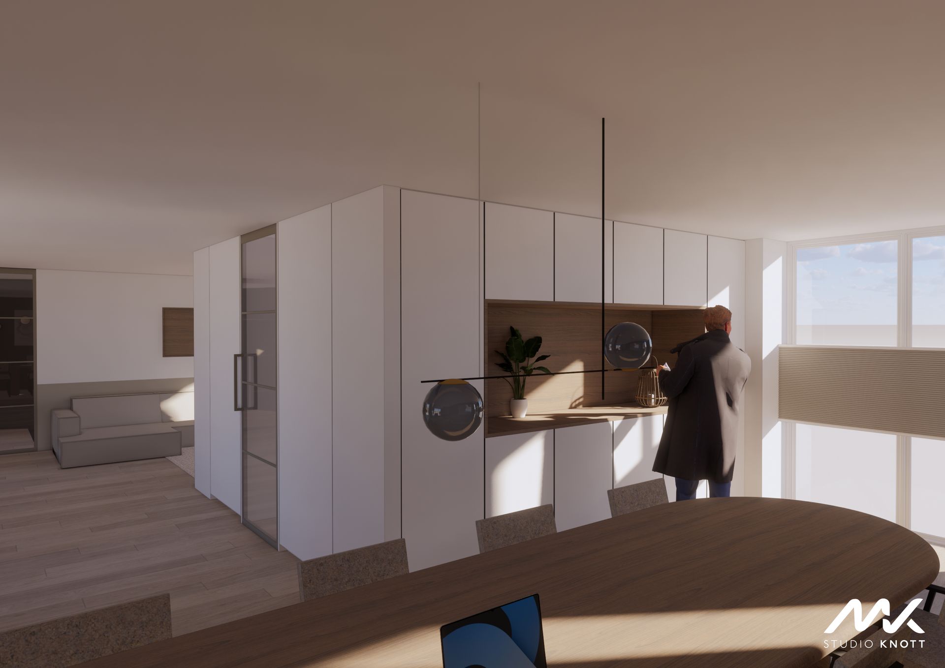 Voor de woning in Bavel heeft Studio Knott een drietal ontwerpen gemaakt. Doordat de opdrachtgevers de keuken op verschillende posities in de woning gevisualiseerd wilden hebben.