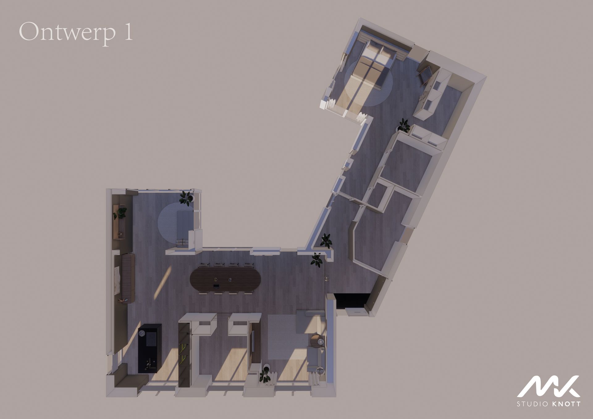 Door middel van meerdere 3D beelden heeft Studio Knott de verschillende ontwerpen inzichtelijk gemaakt.