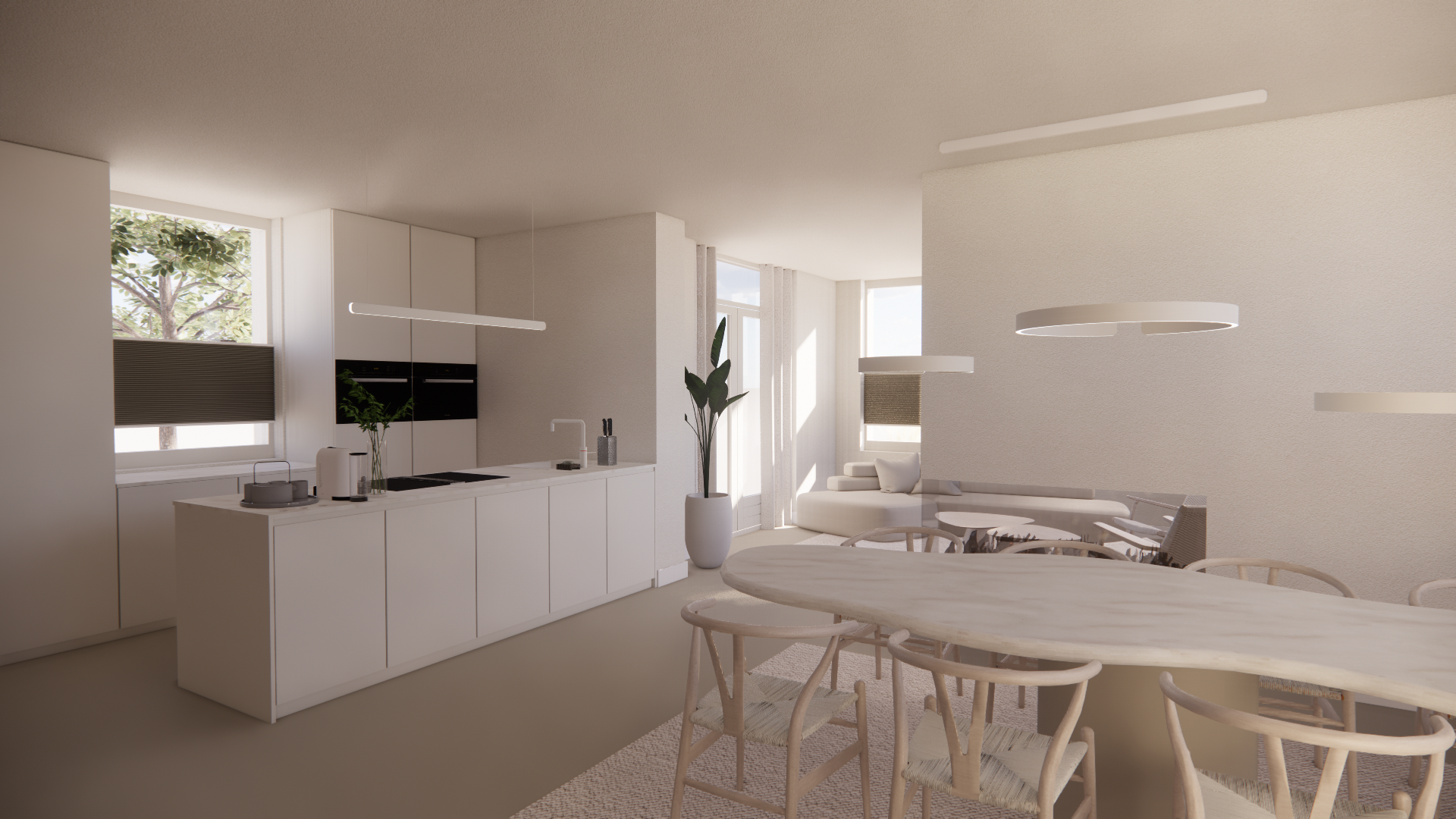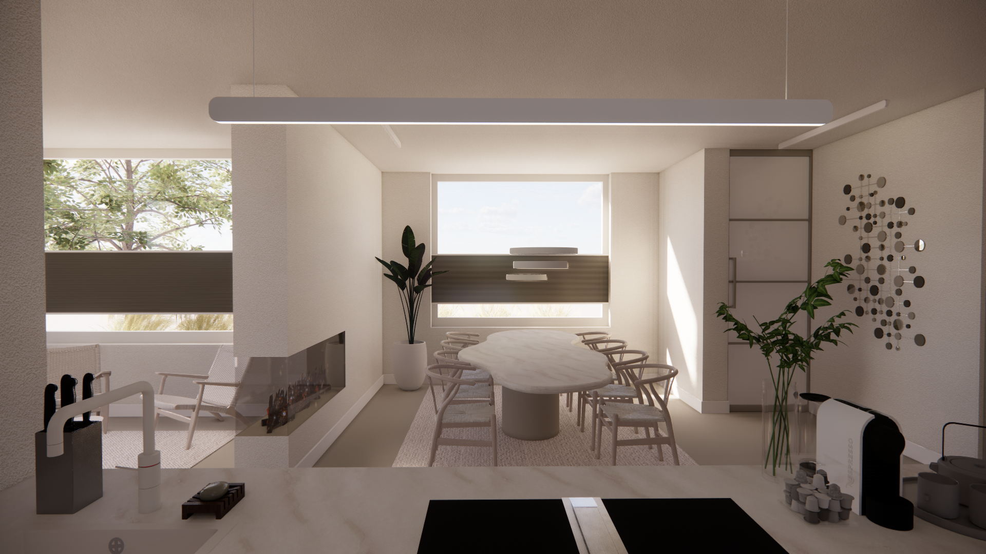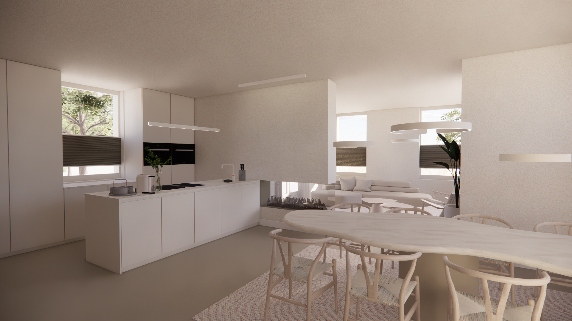Voor de woning in Zevenbergen heeft Studio Knott een ontwerp gemaakt. Uiteraard is er naar specifieke wensen gekeken zoals; opbergruimte en een room divider door middel van een openhaard.